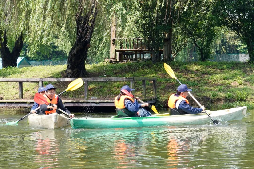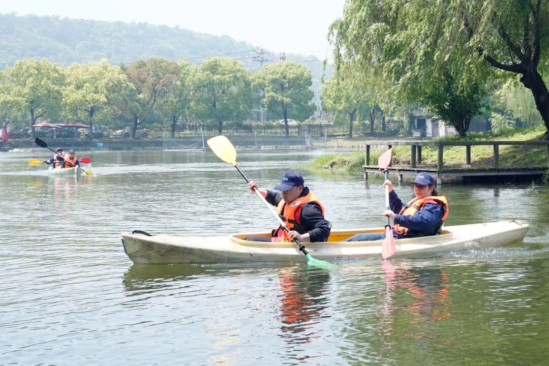 短暂休整后,趣味团队游戏正式拉开帷幕!在万和农乐园的草坪上,大家迅速集结,褪去平日的拘谨,全身心投入到欢乐的竞技中。无论是考验默契的“皮划艇接力赛”,还是比拼协作的“趣味毛毛虫”,亦或是活跃气氛的“极限飞盘”,每一个游戏都充满了欢声笑语,每一个环节都考验着团队的协作与配合。赛场上,大家相互鼓励、彼此支撑,为了团队荣誉全力以赴;赛场下,掌声、欢呼声、笑声此起彼伏,陌生感在互动中消散,默契度在协作中提升。每一次全力以赴的冲刺,每一次并肩作战的瞬间,都彰显着金义博人凝心聚力、奋勇争先的团队精神,也传承着脚踏实地、协同奋进的劳动精神。