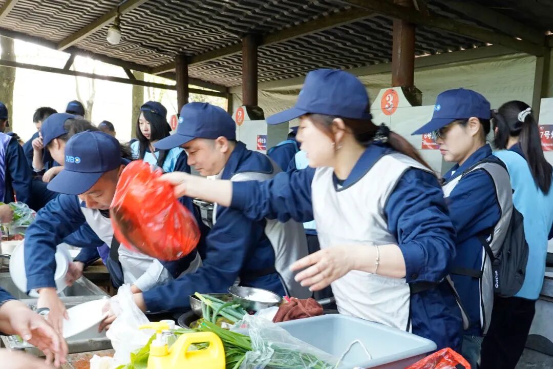 都说人间烟火气,最抚凡人心。团建的第一站,便是最具烟火感的土灶野炊环节。分工、协作、动手,平日里专注于仪器研发、检测的金义博家人们,瞬间化身“山野大厨”,各司其职、默契配合。有人负责生火添柴,在噼啪作响的柴火声中感受乡村野趣;有人忙着洗菜切菜,指尖翻飞间整理出新鲜食材;有人掌勺颠锅,翻炒、焖煮间,阵阵香气随风飘散。没有精致的摆盘,却有最纯粹的美味;没有严格的分工要求,却有最自然的协作默契。当锅盖掀开,蒸汽裹挟着菜的香气扑面而来,一道道亲手烹制的家常菜,不仅填满了味蕾,更拉近了彼此的距离,让团队的温暖在烟火气中悄然传递。
